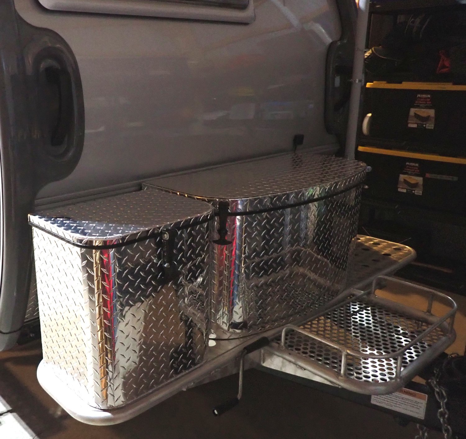 I added one to the T@B's front platform to store all my wheel chocks, levelers, tent stakes, etc. I use for set-up. You can add a second one to the other side for even more storage.