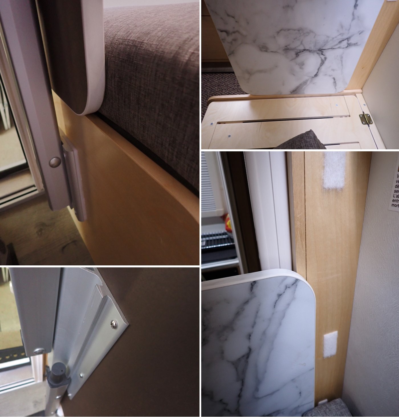 Hint: When placing the new bracket, make sure the upright table sits on the edge of the bench and overlaps the door frame slightly for additional support at night. (pictures)